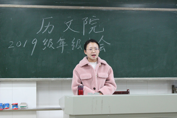 会上,陈卓君首先回顾了本学期2019级学生的总体表现,对同学们在各级各类活动中所取得的成绩给予了充分肯定。随后,她从备考指南、考试纪律、寝室学习氛围、安全教育、宿舍卫生等多个方面对同学们提出了要求和希望。 在备考指南方面,她强调,临近期末复习备考的关键期,大家应继续保持良好的学习习惯,密切与各班班导师的交流联系,进一步提高学习效率,做好备考工作,保持优良学风;在考风考纪方面,她要求全体同学要踏实认真去学习,诚实守信去考试,考出自身水平,考出个人品质。在安全教育方面,她强调,一方面,大家要遵守校规校纪,严禁在宿舍使用违规电器,一定要把安全放在第一位,另一方面,大家平时上下课往返一定要注意安全,节假日期间,一定要注意人身、财产、饮食等方面的安全。在寝室卫生方面,她结合在平日下寝中发现的问题和本周学院卫生检查的情况,提出了寝室内务卫生的相关要求。