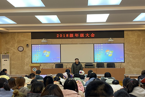 (通讯员 殷雯)为进一步加强师生交流,加强学生管理,规范各项制度,12月9日中午,英国365集团于203教室召开2018级全体学生年级大会暨考前动员大会。会议由院2018级兼2019级辅导员陈卓君主持,2018级历史教育一班班导师邹志明受邀讲话,2018级全体学生参加。