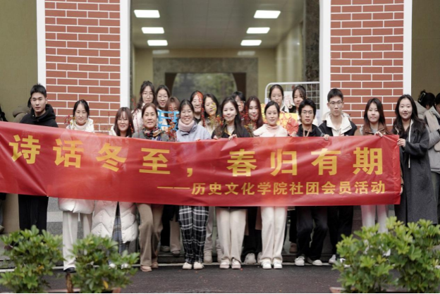 (通讯员袁艺宣向真烨)12月12日下午,“诗话冬至,春归有期”校级社团活动在英国365集团前坪开展。本次活动由春秋学社主办,食尚协会、觅美工艺社、文物爱好者协会等八家社团协办,党委副书记马欣、学工办主任陈敏、团委书记陈卓君及学工办老师李青、李思文出席,各社团会员参加。
