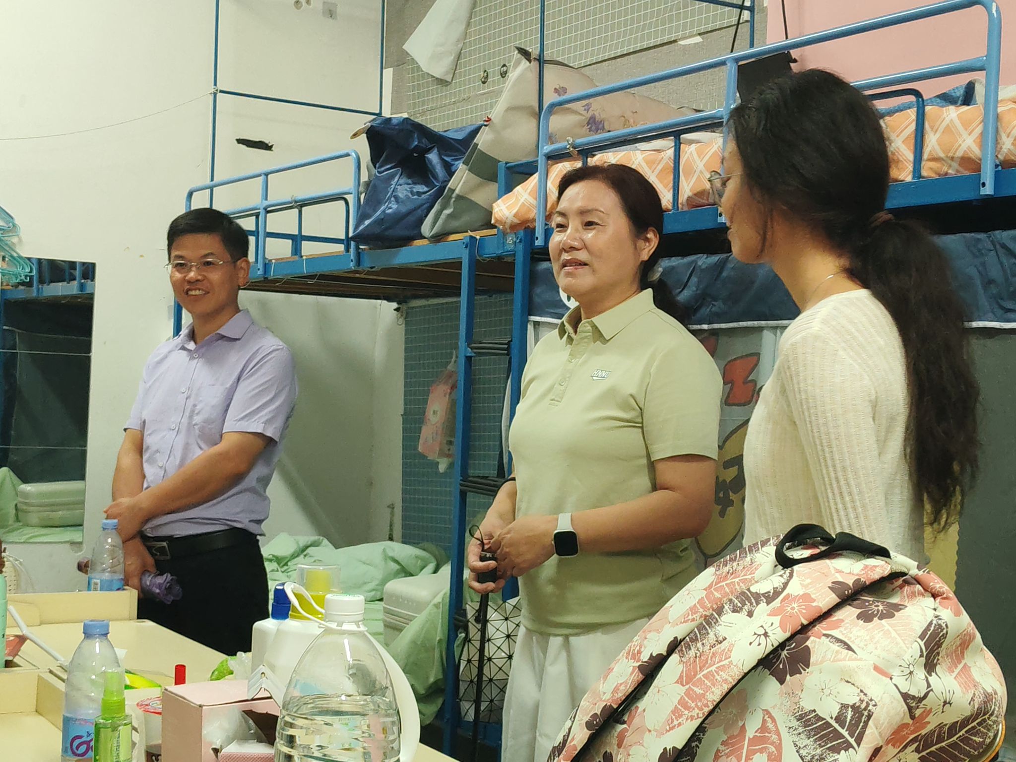 报到正式开始之前,新生辅导员和各班班导提前录制报到路线视频并前往学生宿舍对可能出现的安全隐患进行排查。报到期间,南院校区各个服务点均有志愿者为新生提供路线指引、报到咨询、校园介绍和行李搬运的帮助。迎新期间,马欣在报到点对新生报到流程和进度进行了解,与前来办理入学报到手续的新生亲切交谈。在下寝过程中,刘利民和马欣带领全体学工办老师和新生班导前往各楼栋开展慰问,询问了新生的基本信息、职业规划等方面的情况并对新生未来的学习生活提出了规划,希望新生在新的学习阶段能够利用好学校和学院提供的丰富的学习资源尽快适应大学生活。迎新工作结束前,刘利民和马欣对志愿者的服务提出肯定和鼓励,并与志愿者进行合影留念。