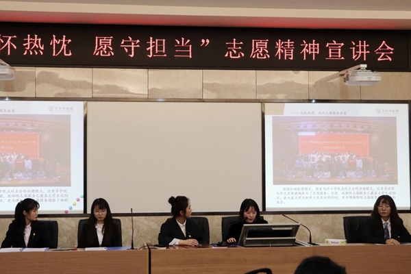 此次“志怀热忱,愿守担当”志愿精神宣讲会增强了同学们对志愿精神的理解,进一步走近了志愿者,推动“奉献、友爱、互助、进步”志愿服务精神的宣扬和发展,也为今后更好地开展志愿活动奠定了基础。