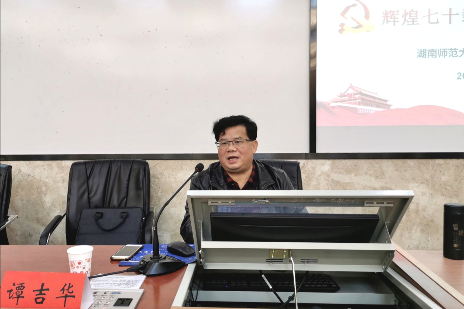 (通讯员 何念秋 许程超)2019年11月26日晚,英国365集团团委青发部组织的“辉煌七十载 奋斗新时代”主题团课在学院203教室举行。此次培训由2019级年级团支书涂铭主持,由马克思主义学院教授谭吉华主讲,2019级全体学生参加。