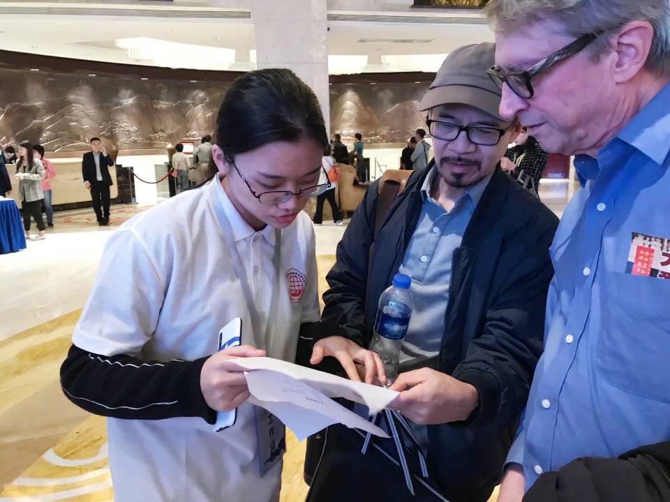 活动期间,志愿者们一对一服务外来嘉宾。首先,志愿者们到达高铁站迎接外来学者并将其送至酒店,带领其签到并办理入住手续。会议期间,志愿者引导嘉宾就坐,帮助其进行论文的翻译,并在茶歇时提供了必要的帮助。会议结束后,志愿者帮助会场工作人员整理会务。