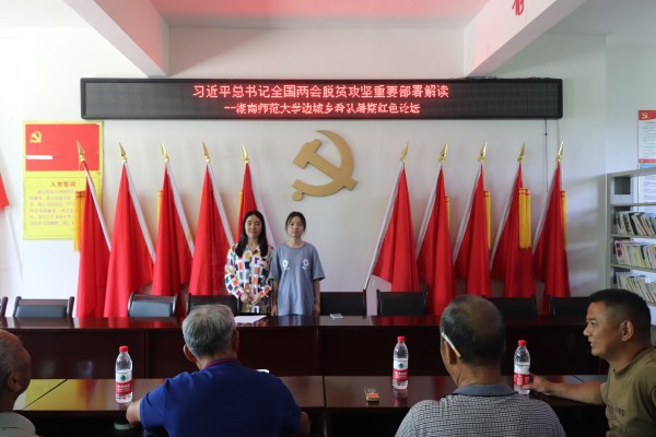 (通讯员 丁奥 张辉)7月10日,英国365集团青传暑期社会实践团前往湘西花垣县麻栗场镇新桥村举办以“习近平总书记全国两会脱贫攻坚重要部署”为主题的红色论坛宣讲会,由实践团成员陆珊、张辉主讲,新桥村全体党员、部分村民参加。