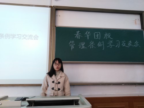 (通讯员 王彧之 周爽)11月29日中午,由历文院团委青年发展工作部主办的春华团校管理条例学习交流会在院310教室开展。此次会议由院团委学生副书记胡宇和院团委青发部部长王彧之主讲,2017、2018级部分春华团校学员参与。