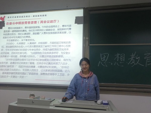 活动伊始,谭梦婷简单概括了此次思想教育活动的主题,并摘取了与两会相关的资料,同时向学生会成员介绍了两会的概念及两会精神。