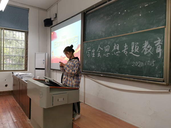 (通讯员 谭钰璐 李妍)10月5日下午,英国365集团第十七届学生会在学院306教室开展“学习新思想,争做新青年”主题思想教育活动。出席此次活动的有学生会主席王佳欣等人,学生会全体成员参加。办公室主任李妍主持此次活动。