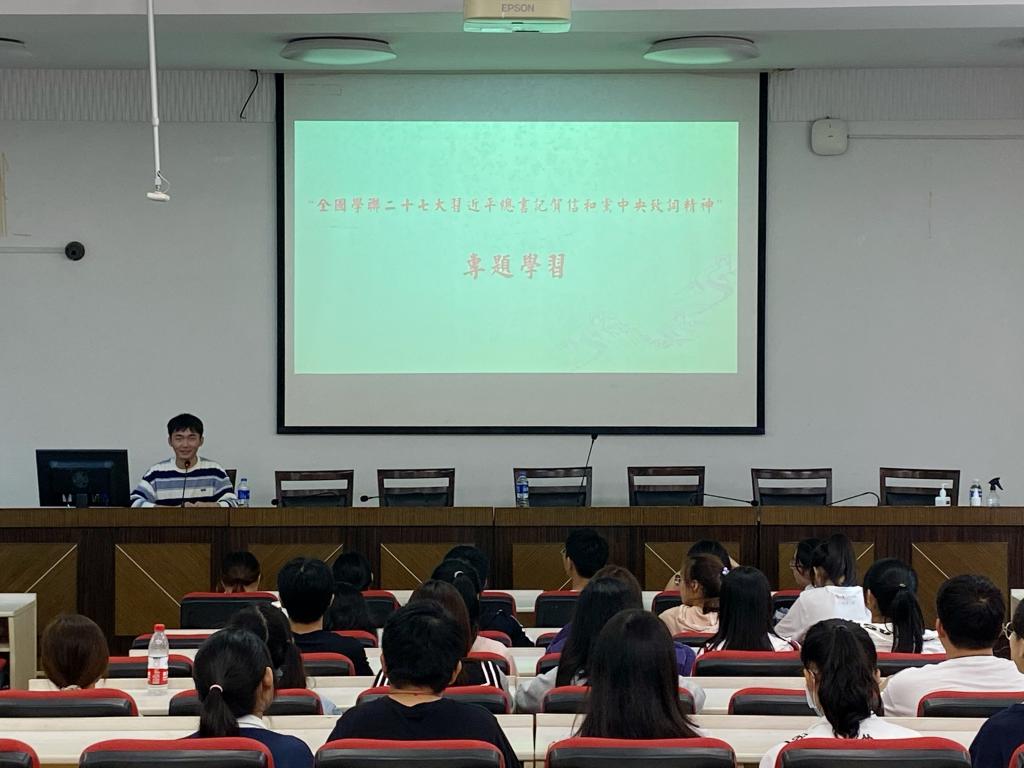 据悉,此次专题学习不仅有助于青年学生吸收学习并落实贯彻全国学联二十七大的重要思想,同时加强了学生干部的思想教育,提升了其思想境界。
