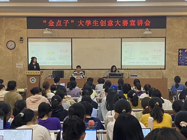 本次宣讲会增进了同学们对“金点子”大学生创意大赛的了解,激发了同学们的参赛热情,鼓励同学们多多思考、善于发现,创造“金点子”。相信即将到来的“金点子”大学生创意大赛中,会涌现出更多历文学子的优秀作品,发扬历文学子的创新风采。