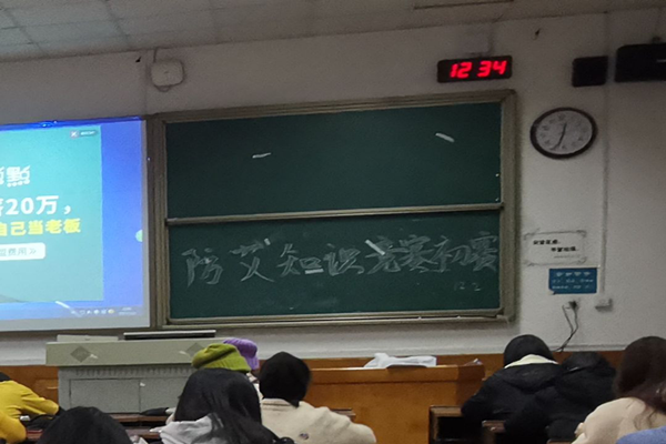 此次防艾知识竞赛分为院级比赛和校级比赛两个阶段,而校赛又分为预赛和决赛,分别在12月7日和12月9日举行,优胜者将获得校级证书。此次历文院防艾知识竞赛初赛将会从34名参赛者中选拔4人组成学院代表队参加校级比赛。竞赛的形式为笔试考核,考试时间为一个小时,答题完毕可提前交卷。在参赛当天,参赛者们陆续进入教室,并在干事们的安排与指引下安静有序地就坐。在考试开始之前,蒋睿向参赛者强调了考试纪律、考试时间以及注意事项,要求参赛者们切忌抄袭以及不要使用电子设备,否则将取消考试成绩。随后参赛选手们开始仔细作答并认真填写答卷。