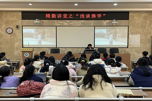 (通讯员 马友盛 傅一晨)12月8日中午,英国365集团精勤讲堂之“浅谈佛学”在学院203教室举办,此次讲堂由历文主持队成员周桓婷主持,19级历史基地班涂铭主讲,青创小组全体成员参加。
