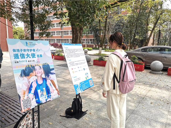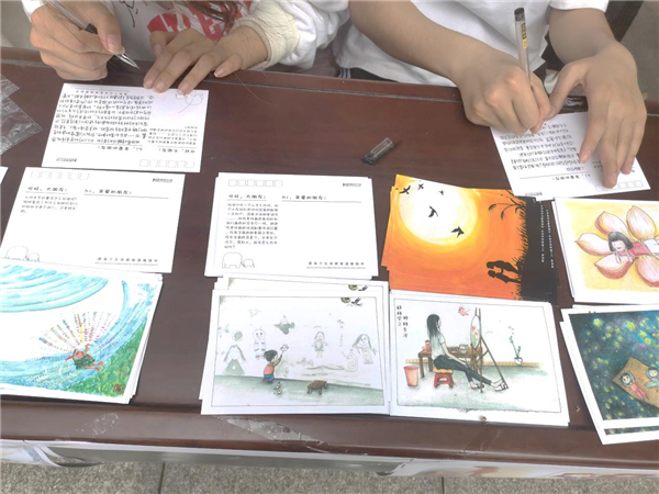 活动伊始,志愿者进行场地布置,搭建展板,为到场的同学们提供一个了解渠道。随后,同学们纷纷到场参观,志愿者向他们介绍了关于“蓝信封通信大使”志愿活动的基本情况,并引导他们参观了留守儿童画作展示及绘本展,展示了留守儿童对于父母亲情的渴望和青春期的迷茫困惑,进一步帮助同学们深入对于留守儿童问题的认识。最后,活动主办方给同学们提供免费明信片,上面附有留守儿童的疑问与烦恼,参观的同学们可以根据自我感受在明信片上进行书写,帮助他们解决烦恼。活动结束后,将会将明信片统一寄回给留守儿童们。