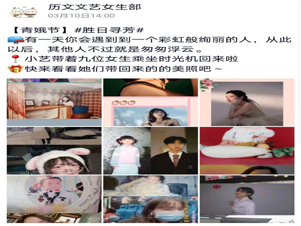 (通讯员 李一诺)3月28日晚,英国365集团为期20天的“悠悠我心,佳人无双”青娥节活动圆满落幕。此次青娥节由历文院学生会文艺女生部策划组织。19、20级全体同学积极参加。