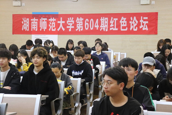 活动中,彭赛丰致辞,讲话内容简要介绍了什么是四史以及青年人学习四史的意义,鼓励历文学子努力学好四史,从而更加坚定理想信念,树立远大理想,做到矢志拼搏奋斗,竭力投身强国伟业,成为新时代新中国担当有为、发光发热的一代人。四位主讲人围绕主题依次进行演讲,前两位主讲人演讲之前有小剧场的表演;后两位主讲人演讲之前则有音影片段进行介绍。刘吉胜讲述社会主义发展史,强调了十月革命对于中国建党的重要意义;雷国顺讲述党史,借用湖湘文化讲述了从建党到建国的血泪奋斗史;黄佳宜以自己第一次在北京看升国旗的经历为切入口,讲述了新中国史;马宁泽说明了改革开放史对于中国的意义。在四位主讲人讲话过后,向常水以简明的语言再次说明了学四史的意义,肯定了此次红色论坛中小剧场的创新环节,同时也指明了此次论坛的不足之处,对论坛提出了更高的期望。