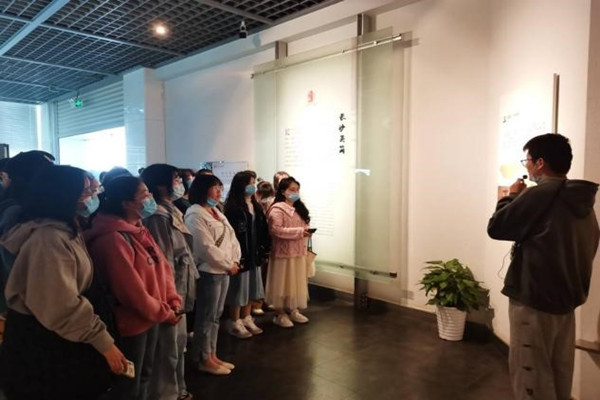 同学们在博物馆门口集合完毕,在博物馆工作人员的指引下,戴好口罩,保持一米距离测温并排队有序入馆。陈列馆分为上下两层,其中展厅一层为《文明之路——中国简牍文化展》,该陈列由《三国吴简》《中国简牍》《世界文字载体》和《中国简牍书法》四部分组成。二层为《湘水流过——湖南地区出土简牍展》。讲解员详细介绍了展厅中简牍背后的故事,也为学员们阐述了简牍的当代价值。其中,讲解员还特别介绍了在湖南省考古发掘和出土的文物,使学员们更深刻地了解到湖南地区简牍文物的考古发掘、研究、保护的相关工作。