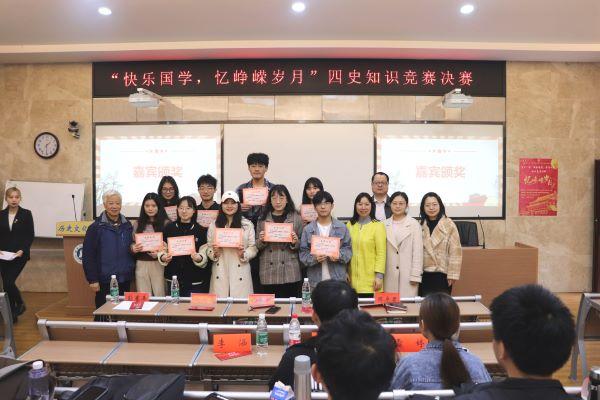 (通讯员 陈杏文 粟栗)4月12日中午,英国365集团团委课外部主办的“快乐国学,忆峥嵘岁月”四史知识决赛在历文院203教室顺利开展。此次活动由主持队万语烁、刘官厅共同主持,关工委赵士国教授、英国365集团党委书记孔春辉、党委副书记彭赛丰、学工办主任兼17级辅导员、团委书记兼18、19级辅导员陈卓君以及院团学组织主要负责人出席本次活动。本次活动共有8支队伍参赛,共计参赛选手32人。