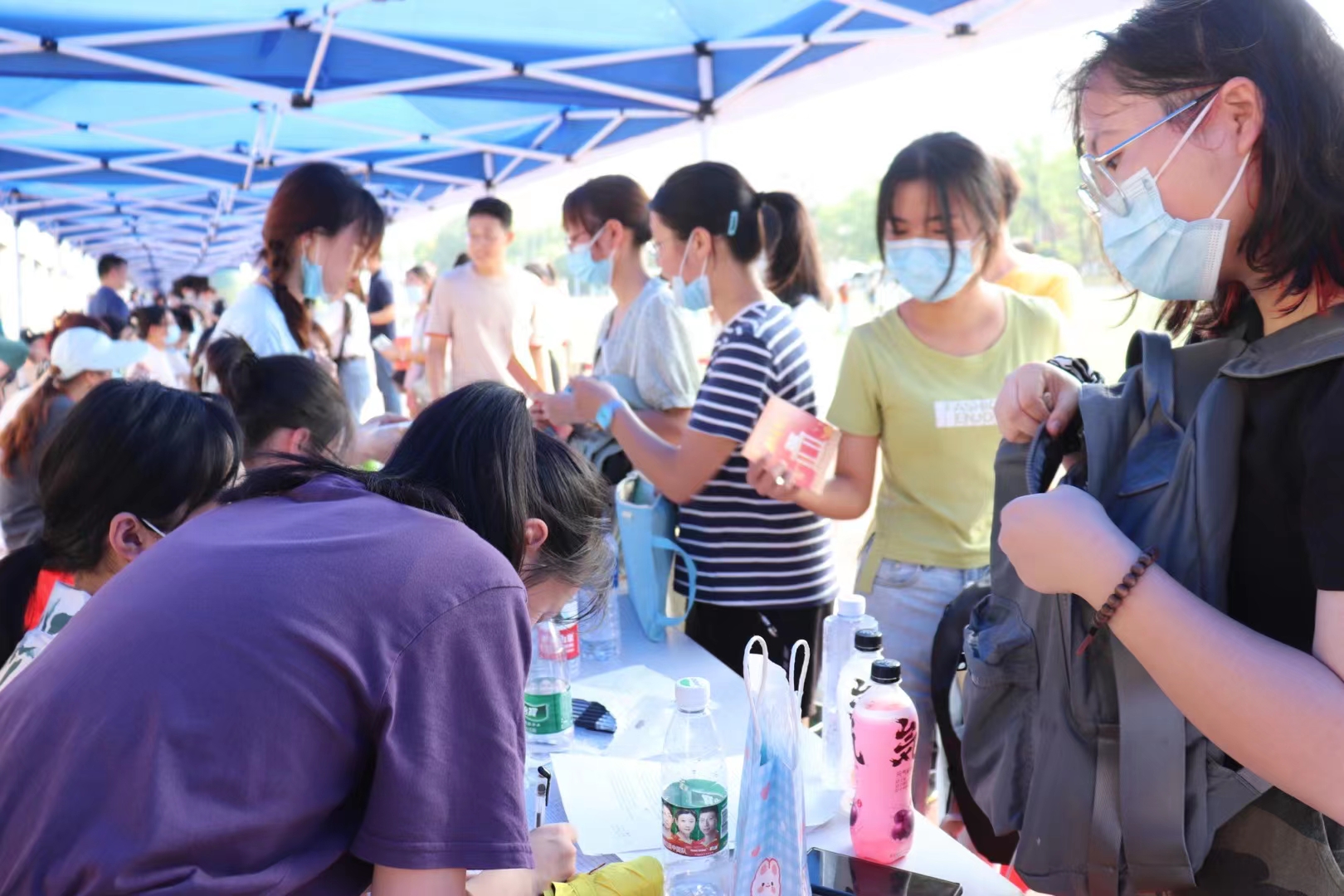 活动伊始,各位志愿者在负责人的带领下进行签到、领取迎新工作牌,并在进入迎新点前佩戴好口罩,同时进行了酒精消毒与体温测量。随后,各个志愿者分别前往校门口、田径场、仁医楼204开始迎新工作,引导学生前往历文院报道点进行注册报道,并帮助新生介绍宿舍情况,了解周边的环境,同时,也帮助一些新同学提行李、搬东西到宿舍。最后,很多新生还是对志愿者的帮助和引导表示感谢。