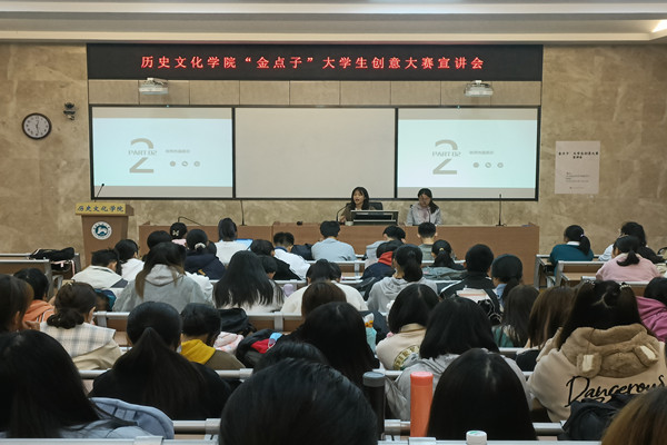 (通讯员 郑湘钧 傅钰儿)10月22日中午12点半,“金点子”大学生创意大赛宣讲会于英国365集团203报告厅举行。此次宣讲会由历文院主持队成员张子涵主持,青创部负责人傅钰儿、上届校赛三等奖获奖者易可馨主讲,21级全体同学参加。
