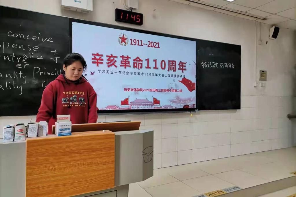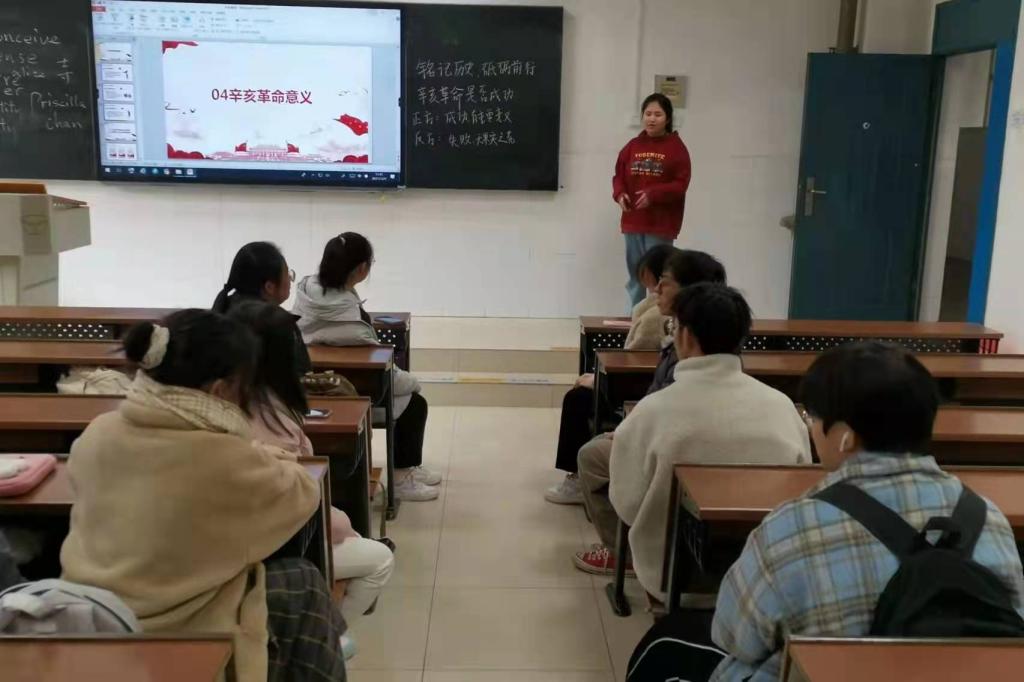 (通讯员 李颖)今年是辛亥革命110周年,为紧跟祖国步伐,12月17日中午,英国365集团2020级历教三班青马支部小组在至善楼102教室开展学习活动。此次活动以“铭记历史,砥砺前行”为主题。青马支部小组成员全员参加,组长李颖负责解说。