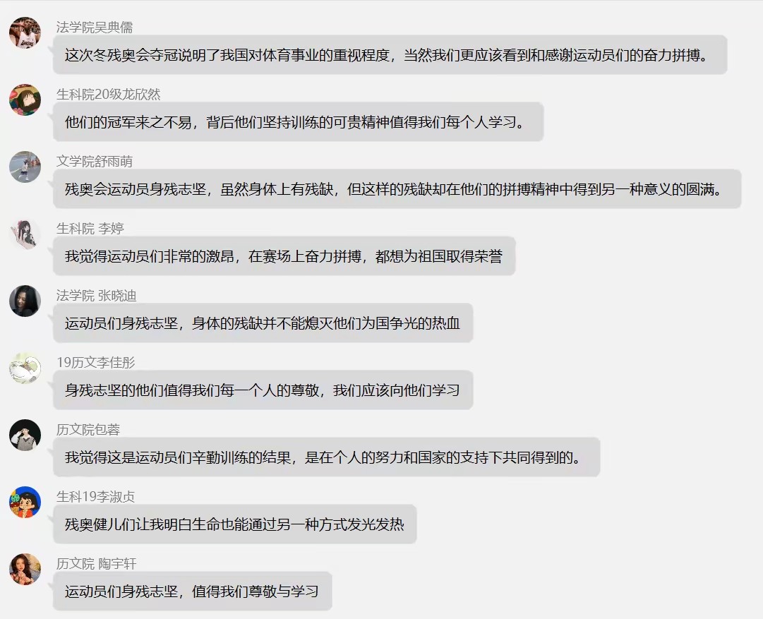 (通讯员 义秀娟)近日,冬残奥会运动员们的精彩表现和明星邓伦偷税漏税事件引起了社会关注。3月16日下午,历文院、法学院、文学院、生科院青年评论部开展以“残缺之身亦能洒满星光,光鲜外表何以染尘”为主题的线上评论沙龙活动。此次评论沙龙由喻凌峰、谢梦佳主持,历文院、法学院、文学院、生科院全体评论员,校青评网编辑参加。