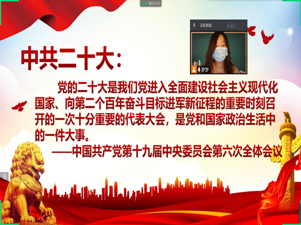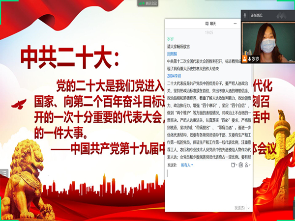会议伊始,王可儿简要介绍了此次活动的主题和目的,随后围绕“四史学习内容及目的”、“大学生如何学好四史”、“以实际行动迎接中共二十大”等要点对此次学习主题进一步阐述。接着组长组织全体成员针对习近平总书记关于四史学习的经典语录,并就大学生如何以实际行动迎接中共二十大进行讨论。之后进行了针对四史知识及中共二十大相关知识的问答环节,通过问答的形式加深对相关知识的理解与掌握。最后,王可儿对此次学习活动进行总结,并希望大家要有广阔的胸怀与爱国的热情,在新时代新征程上留下无悔的奋斗足迹,以实际行动迎接党的二十大胜利召开。