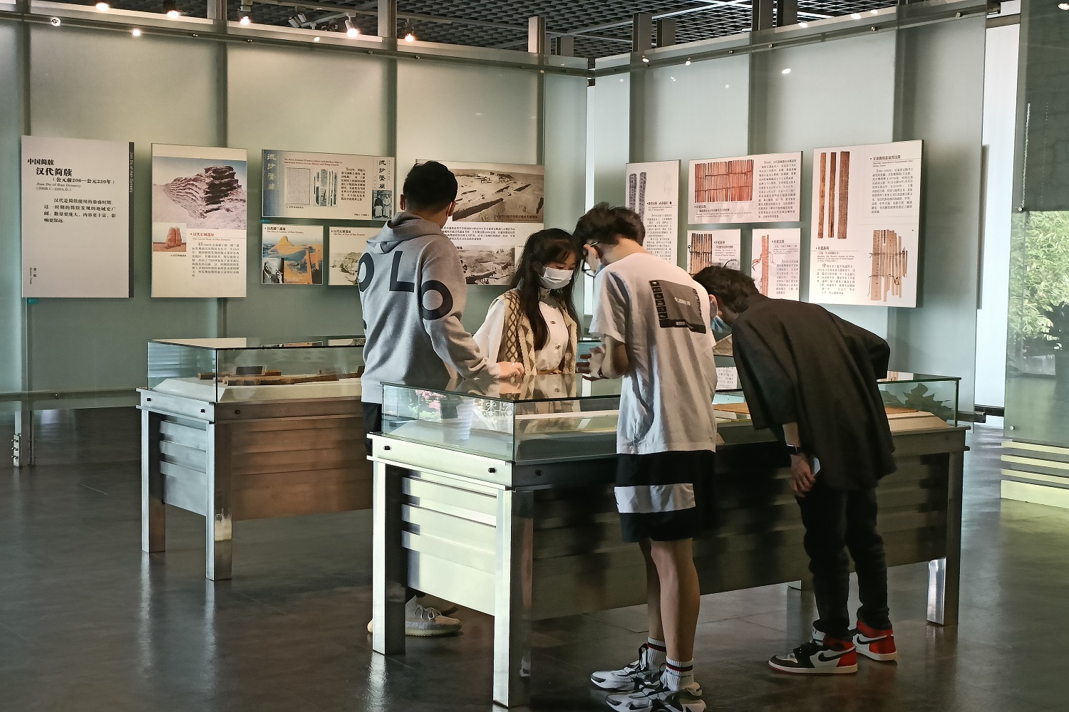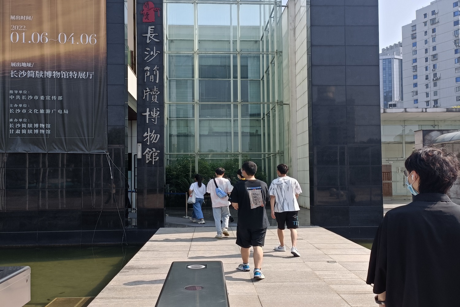 同学们在博物馆门口集合完毕,在博物馆工作人员的指引下,戴好口罩,保持一米距离测温,查验场所码排队有序入馆。陈列馆分为上下两层,其中展厅一层为《文明之路——中国简牍文化展》,该陈列由《三国吴简》《中国简牍》《世界文字载体》和《中国简牍书法》四部分及甘肃简牍文物精品展《流沙坠简》组成。二层为《湘水流过——湖南地区出土简牍展》。讲解员详细介绍了展厅中简牍背后的故事,也为学员们阐述了简牍文化对后世中华文化所产生的影响,使学员们领略简牍书法魅力,传承中国历史文脉。