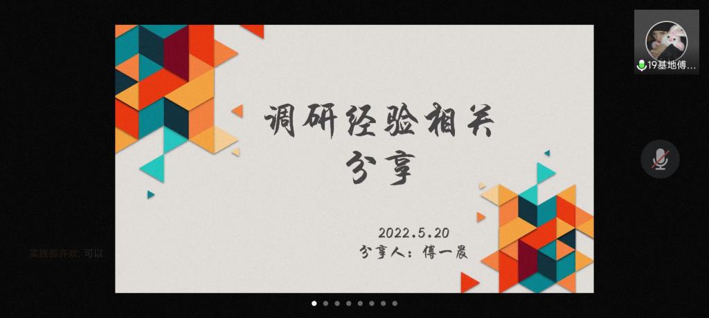 活动开始前,马书记对暑期社会实践进行了简单的介绍,她表示学院一直非常支持同学们参加暑期社会实践活动,并鼓励同学们要在实践活动过程中不断开阔视野和提高自己的实践能力,同时对2022年的暑期社会实践提出了新的期望,为即将到来的暑期实践活动进行动员。在此次活动中,组织者邀请到了傅一晨、涂铭、李妍、徐方远等19及20级学生代表为同学们进行往期暑期社会实践的经验分享。四位主讲人就暑期社会实践的调研报告、论坛工作、生活准备、口述史工作、支教活动和成果收获进行了详细讲解与分享,让21级同学们进一步了解了暑期社会实践。