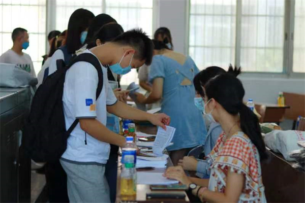 活动伊始,70名志愿者在负责人的带领下进行签到,领取迎新工作牌,佩戴好口罩,并进行了消毒与体温测量工作。随后,志愿者们分别前往校区口、田径场、教室、宿舍开展迎新工作,引导新生前往历文院报道点进行注册报到,向新生介绍校园及周边的环境,帮助新生帮运行李到宿舍。