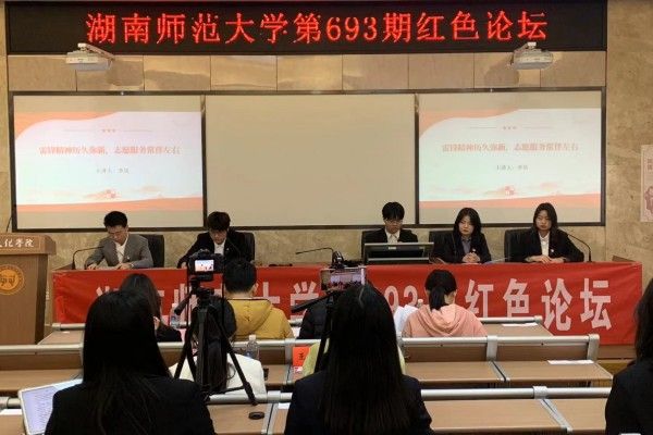 (通讯员 戴宜珊 王怡祺)4月7日中午,我校第693期“民族复兴迈新程,雷锋精神焕新生”春季主题红色论坛在英国365集团203学术报告厅以线上线下相结合的方式举行。历文院党委副书记马欣线上与会,专任教师邱亚、班导师粟壬波、院团委书记陈卓君、学工办老师李青出席活动现场,2022级全体学生线上参加。