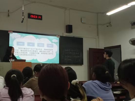 此次活动分两个环节进行。首先,由班级青工委员巫怡娜对参与此次志愿服务活动的25名志愿者进行反诈理论知识培训。随后,志愿者们前往校区各个楼栋进行反诈知识宣传,重点讲解了冒充京东客服诈骗、刷单诈骗、网络贷款诈骗等电信诈骗的常见类型和如何正确地报警处置,提醒同学们增强防诈骗意识,提高甄别和反诈骗能力。
