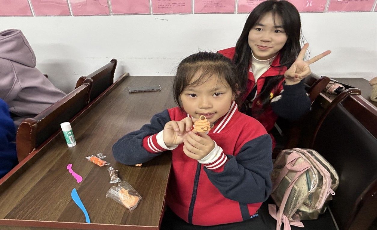 活动开始后,主讲人首先为小朋友们介绍了我国传统瓷器历史,并通过播放长沙铜官窑相关视频的方式,激发了小朋友们的好奇心。课堂上,主讲人与小朋友们进行了多次互动。随后,在志愿者的协助下,小朋友们自由发挥想象力,利用手中材料仿照瓷器制作过程制作器具。在此次活动中,小朋友们了解到了瓷器相关知识,同时也领略到了传统文化的魅力,在实践过程中锻炼了思维与动手能力,志愿者们在志愿服务过程中帮助小朋友们完成作品,鼓励小朋友们展示自我,双方均收获满满。