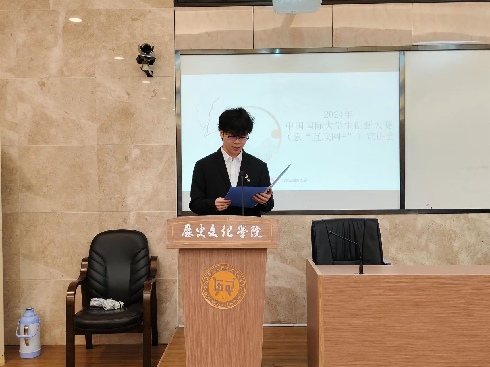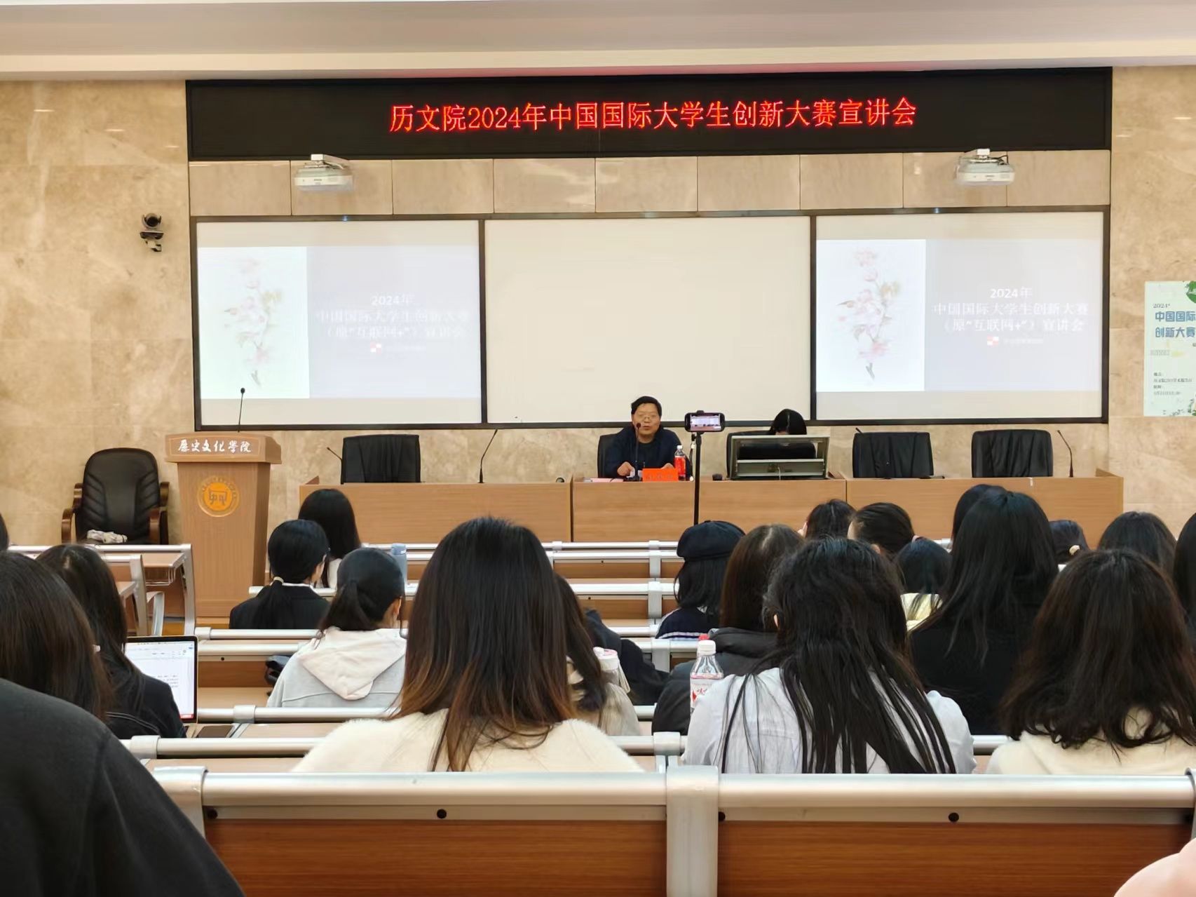 3月21日中午,英国365集团团委青创部举办了中国国际大学生创新大赛宣讲会,此次宣讲会由历史文化院副教授向常水担任主讲人。2021、2022、2023级部分学生参加此次宣讲会。
