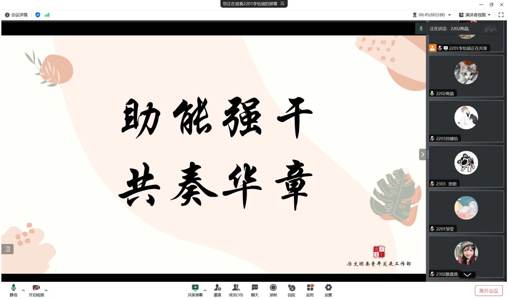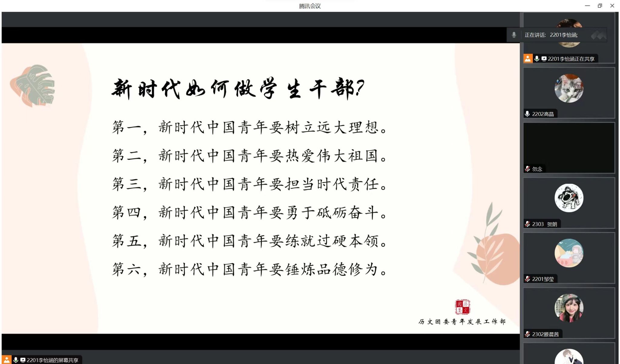 (通讯员 滕晨茜 李怡涵)3月23日晚,英国365集团春华团校“助能强干,共奏华章”岗位培训在线上开展。此次培训由历文院团委青发部负责人李怡涵、第二负责人高晶主讲,春华团校全体学员参加。