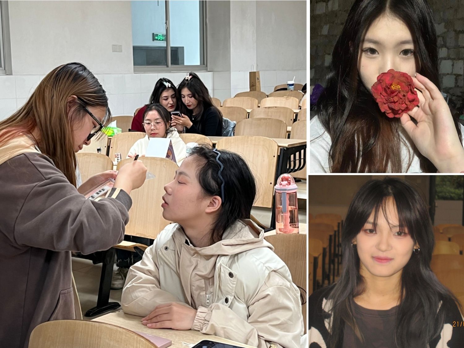 此次活动主要分为“淡扫蛾眉,芳华悦己”交换化妆活动、“兰亭葳蕤,有馥其华”手工串珠活动,“我行其野,芃芃其麦”明信片互赠等三个环节。交换化妆活动以选手两两一组为搭档进行妆容设计,促使同学们增进彼此友谊,提升对美的认识,体会女性美。手工串珠环节,同学们在工作人员的指引下参加趣味猜词抢答, 并根据游戏总分排名依次领取材料进行手工串珠制作。在明信片互赠环节中,同学们在明信片上写下对于朋友的祝愿与未来的期许。创作完成后,队伍内选手互赠明信片,表达情意。