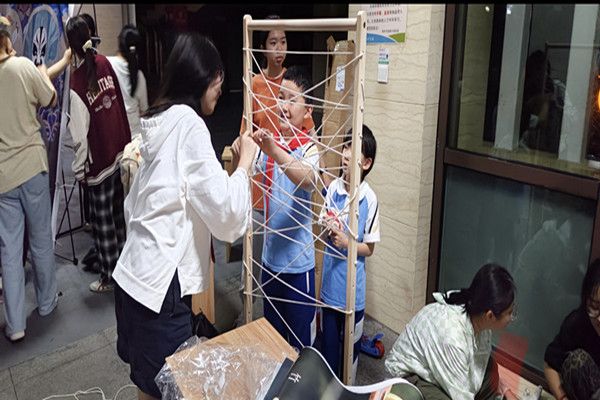 活动伊始,志愿者前往中和楼前坪布置活动会场并按区块来分配任务。在“游戏人间”区块中,志愿者为前来参与的同学讲解投壶、捶丸、博饼、九连环和象棋五个活动,引导他们有序体验中国传统游戏。在“DIY手作”区块中,志愿者带领参与者依次体验竹节人、竹编画、湿拓画、插花、擂茶五个项目,创作非遗作品。与此同时,志愿者在“非遗市集”处设置义卖区、展览区和兑换区,展览优秀的非遗作品,帮助参与者进行义卖,并兑换小礼品赠予参与者。活动最后,志愿者和参与者在“互动展区”一同拍照留念。