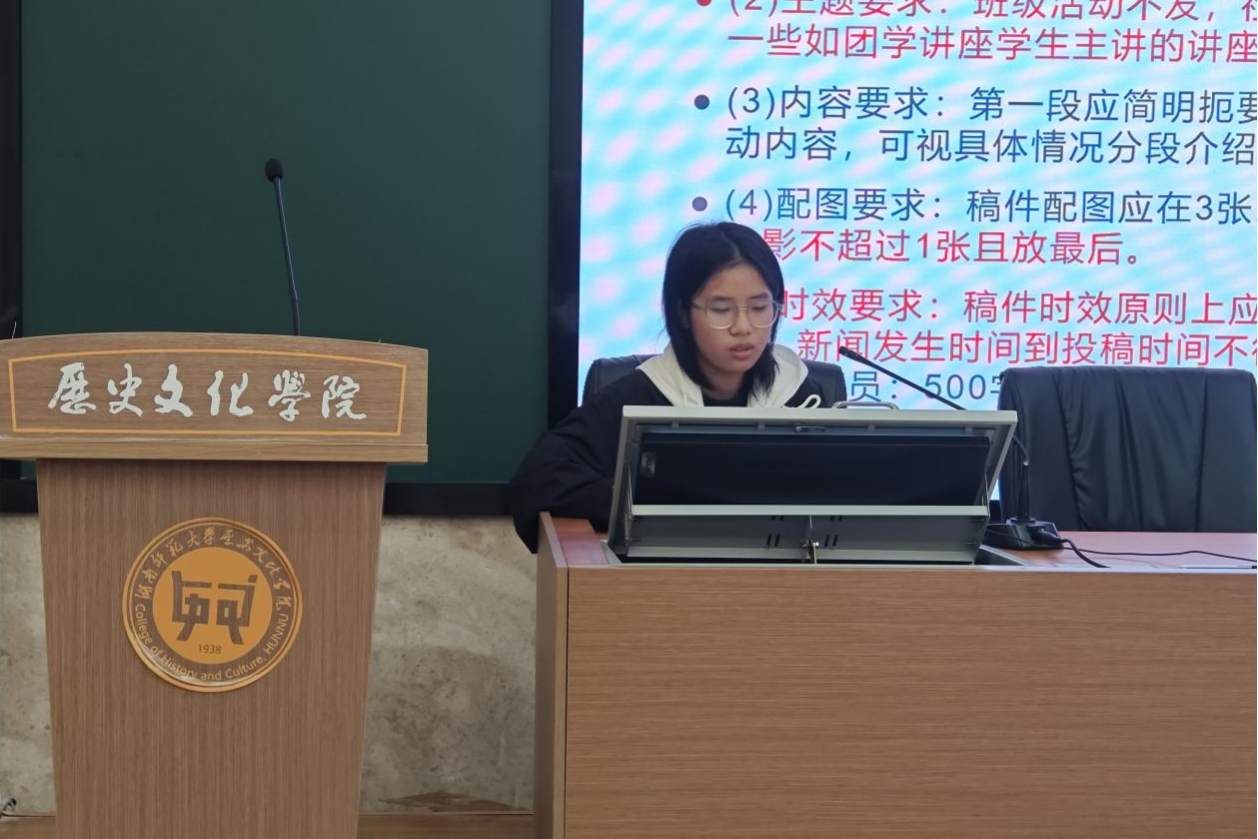 新闻培训会由文稿写作技能培训和照片拍摄技能培训两个板块组成。围绕文稿写作技能培训,叶紫琴以日常新闻格式为讲解重点,对新闻基本要求进行了系统的介绍。匡艳芬通过分析新闻典型案例,对新闻写作的常见问题进行了归纳和解答。李亚群分别介绍了星网和励德网的投稿标准和写作细则,梳理了与校网对接的流程。照片拍摄技能培训部分,刘嘉可从新闻照片拍摄的构图、画质、色彩多角度出发,深入讲解了照片拍摄的技巧和方法。唐静茹指出新闻照片应该准确地反映新闻事件的现场情况、捕捉关键瞬间,并对新闻照片的质量提出了细致的要求。