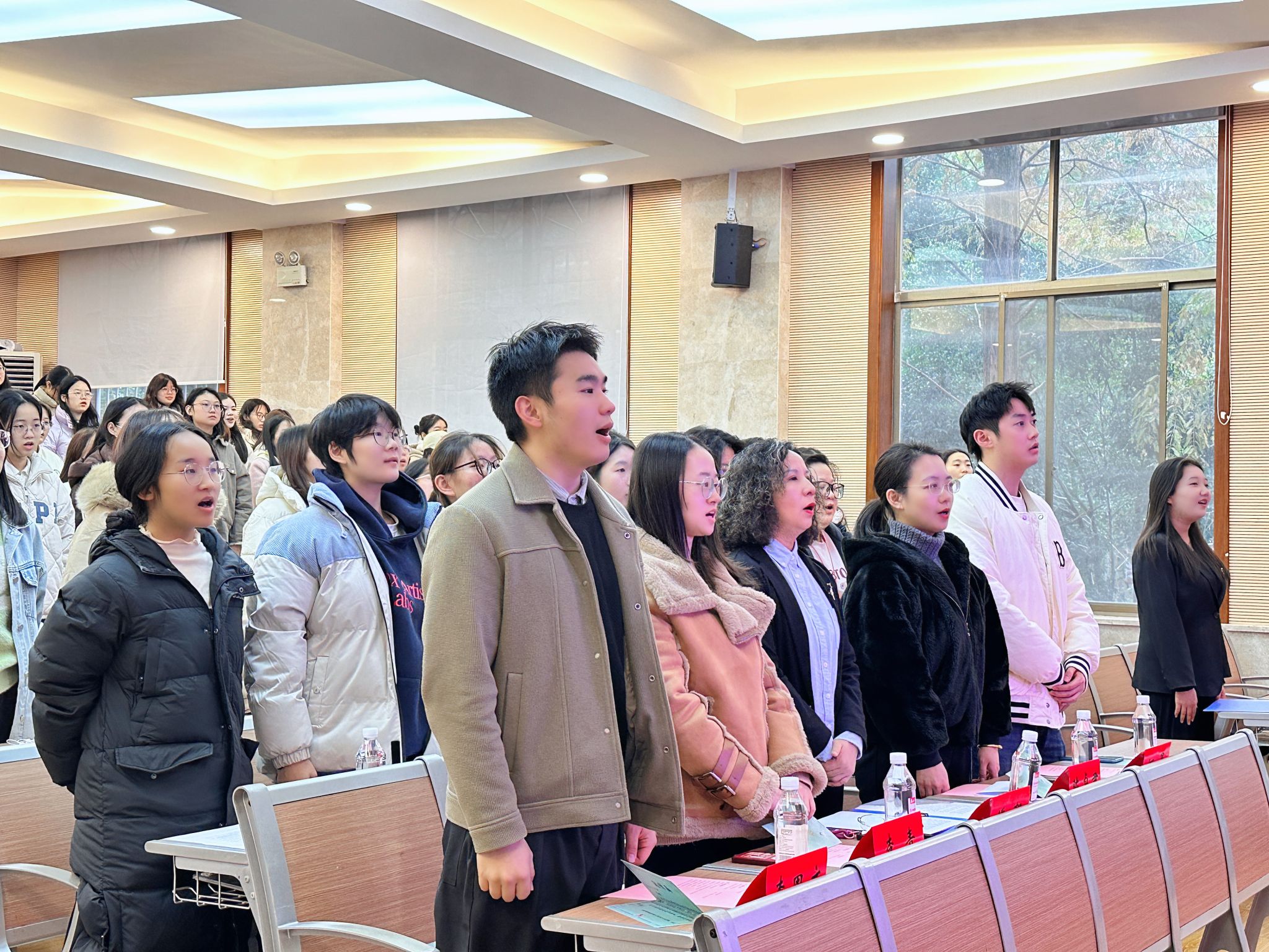 会议伊始,全体起立,奏唱团歌。随后,院团委青工部进行风采展示,合唱歌曲“夜空中最亮的星”和表演手势舞“左手右手”。接着,春秋学社理事长袁艺宣、志愿者代表何祎、长沙市爱福自闭症儿童教育中心负责人潘郁三位主讲人分别以《不啻微茫,造炬成阳》《微光可成炬,大爱映苍穹》《以志愿精神,点亮星星之光》为题,结合自身经历讲述她们对志愿精神的感悟,引导同学们领悟志愿精神的内涵。随后,在志愿分享和互动环节中,同学们分享自身志愿经历,并与主讲人进行问答交流,进一步深化对志愿者精神的认识。最后,陈卓君对此次宣讲会进行点评与总结,她充分肯定三位主讲人的发言,并指出,每一点微小的星火都蕴含着不可忽视的力量,希望同学们秉持志愿精神,参与到更多的志愿服务当中。