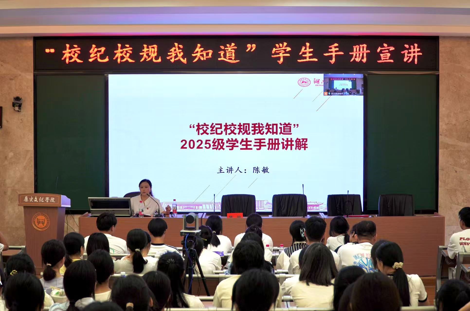 (通讯员邓曦雨刘嘉可)9月15日下午,英国365集团于文渊楼202、203教室举办了2025级新生系列讲座之一的"校纪校规我知道"主题讲座。此次讲座由学工办主任陈敏老师主讲,2025级全体新生参加。