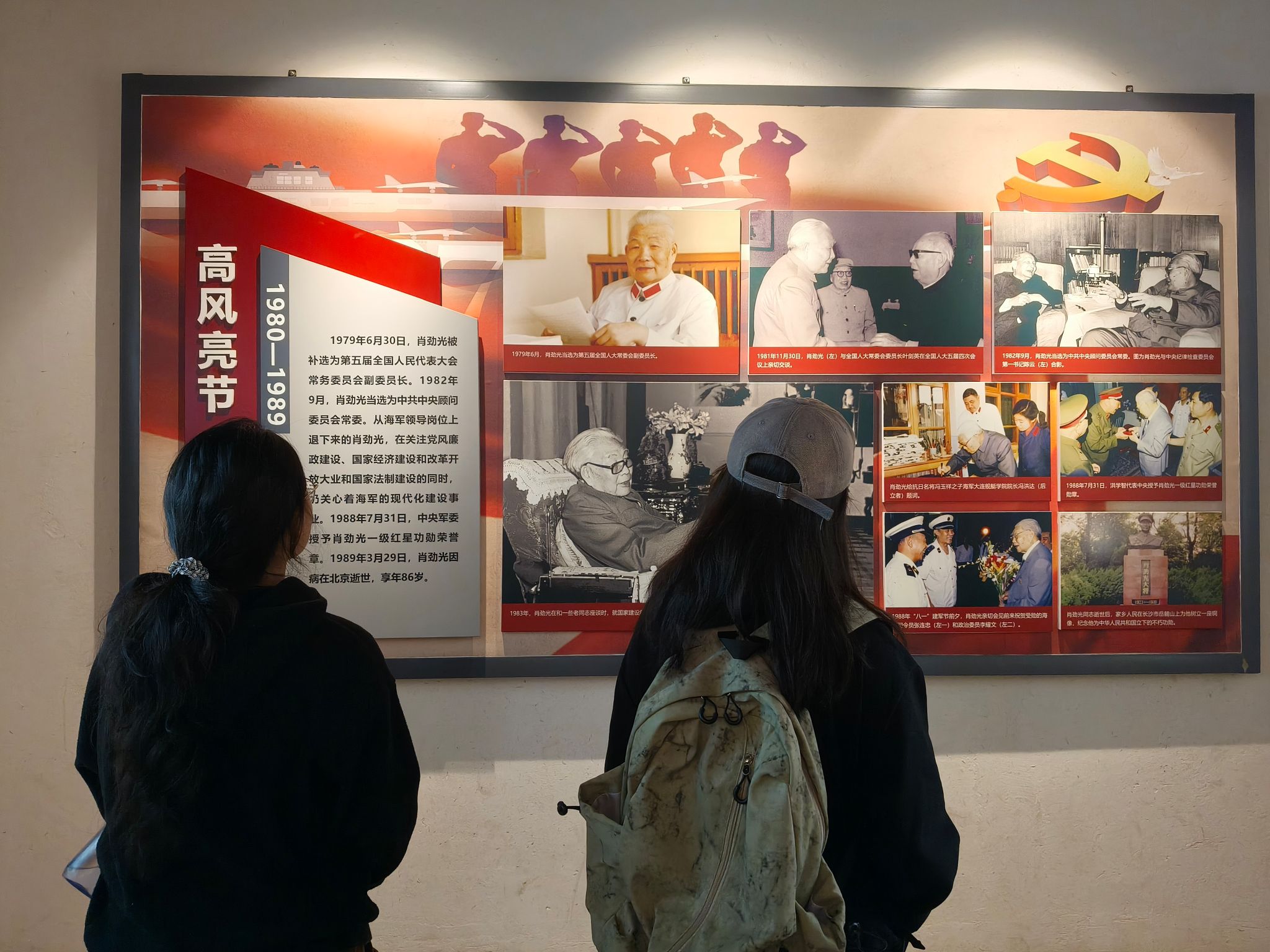 在讲解员的带领下,学员们依次参观了“开发苏区,砥砺长征”“留守边区,保卫延安”“南征北战,战功卓著”等七个展厅,聆听展品背后的革命故事,了解了肖劲光的生平事迹和他对中国海军建设事业的奠基性贡献。参观过程中,学员们围绕展出展品积极交流互动,分享自己的心得体会。通过讲解员的介绍和展厅的资料说明,学员们对肖劲光的精神品质有了更加深入的理解。