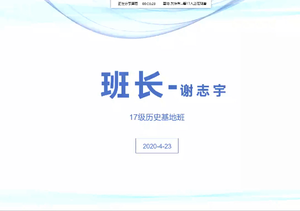 (通讯员 卢晨昱 谢志宇)4月23日下午,历文院2017级历史基地班线上召开了2019-2020年度班团干部述职大会,此次活动由班级团支书阮嘉豪主持,2017级历史基地班团支部全体成员参加。