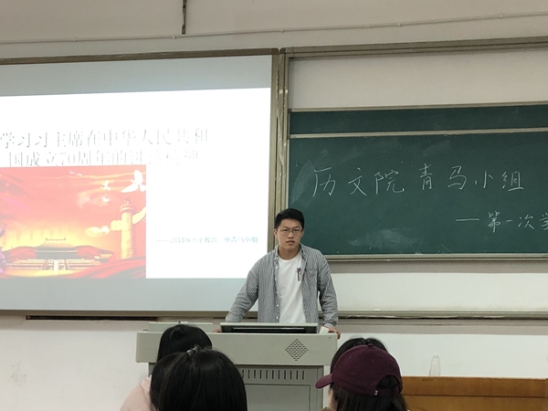 (通讯员 何苗)11月10日下午,英国365集团2018级历教一班青马小组在307教室开展“学习习近平新时代中国特色社会主义思想,共筑中国梦”活动。此次学习活动由2018级历教一班青马小组组长李文杰主持,小组全体成员参加。
