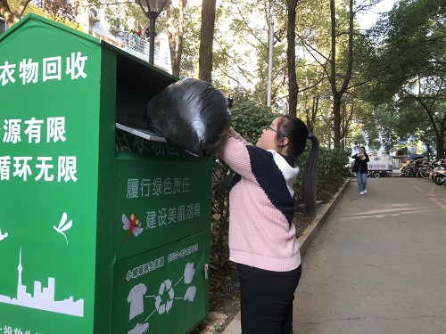 活动中,王金玉分发给各个小组所需塑料袋以便回收旧衣物,各小组便去往各自负责的楼栋敲门询问每间寝室,并解释此次志愿活动以及目的。收集到衣物后将其打包好放入塑料袋中,活动最后,各小组将收集到的所有衣物打包好放进了旧衣物回收箱。