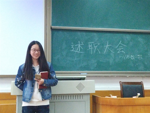 (通讯员 刘杭波)4月4日上午11时许,历文院2017级历史教育一班在院308教室开展年度班团干部述职大会,此次活动由班级团支书刘杭波主持,2017级历史教育一班团支部成员参加。