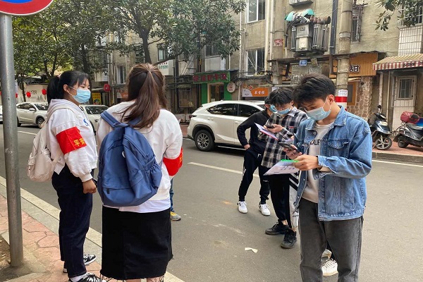 活动开始前,历文院志愿者于我校图书馆前空地集合,负责人张小玉将志愿者分组,安排服务时间、地点并进行相关的提醒。到达目的地后,两组同学到社区公共服务中心等待社区人员安排。等对接工作完成,第一组的5名同学,进行成人高考引导活动。同学们为考生指路、提醒考生提前出示健康码、劝阻考生乱扔垃圾的行为以保持考场外卫生并引导考生文明有序出入考场。第二组的10名同学辅助社区重阳节表演活动的进行。同学们帮助社区人员布置表演场地、帮助表演者准备道具、引导老人们有序就坐观看表演,良好地维持了活动现场的秩序。