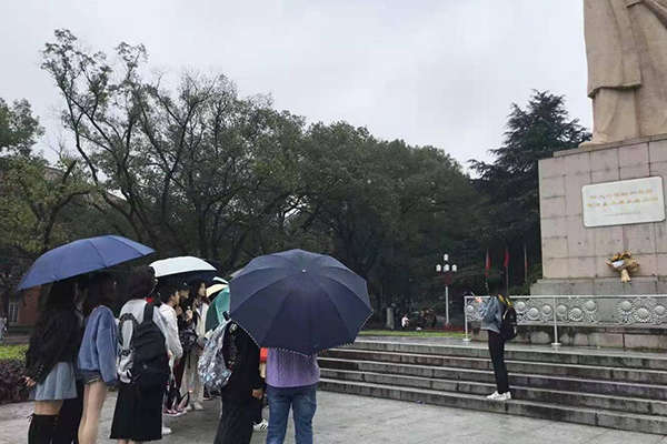 活动期间,文管班全体成员准时到达东方红广场,班级干部组织同学在广场毛主席雕像下拍摄班级合照。之后,李苗为大家讲述红色经典、介绍岳麓地区历史人物与故事,同学们在讲述中获得了对所在岳麓大学城更新更多的认知。最后,李苗组织同学们继续参观大学城景点,同学们纷纷拍照“打卡”。