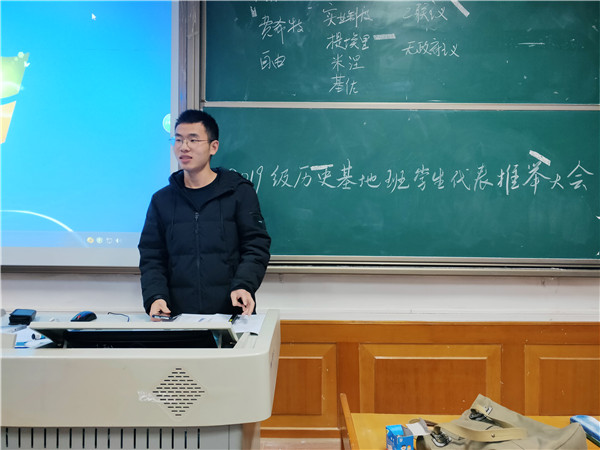 (通讯员杨卉 欧阳博爽)12月2日上午,英国365集团2019级历史基地班在310教室举行了学生代表班级选举会。此次会议由班长欧阳博爽主持,2019级基地班全体同学参与。
