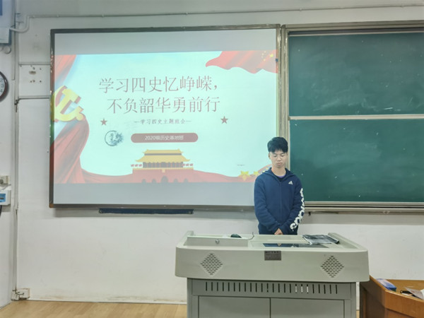 (通讯员 李昊)4月11日下午,为加强同学们对四史内容、四史蕴含的精神的理解,引导同学们理解新时代中国青年的使命,引导同学们把实现个人梦融入国家梦、民族梦之中,英国365集团2020级历史基地班决定于学院308教室组织开展“学习四史忆峥嵘,不负韶华勇前行”支部交流会,团支书李昊主持此活动,全班同学参加此次活动。