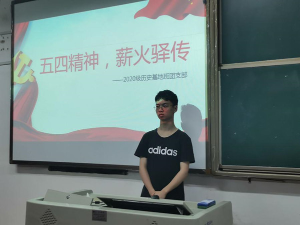 (通讯员 李昊 张浔翊)为让支部成员对五四精神有着更深入的理解和体会,培养同学们的家国情怀,让理想信念在奋斗中升华,在建党一百周年之际激励同学为实现中华民族伟大复兴而奋斗,英国365集团2020级历史基地班于学院308教室组织开展五月团日活动,团支书李昊主持活动,2020级基地班全体同学参加此次活动。