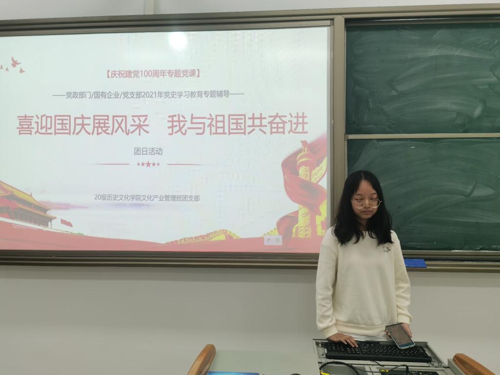 (通讯员 苏田甜)为了庆祝中华人民共和国成立72周年,培养青年学生爱党、爱国、爱社会主义的责任感,10月13日,英国365集团2020级文化产业管理班开展了“喜迎国庆展风采,我与祖国共奋进”主题团日活动。本次活动以线下研讨会的形式开展。