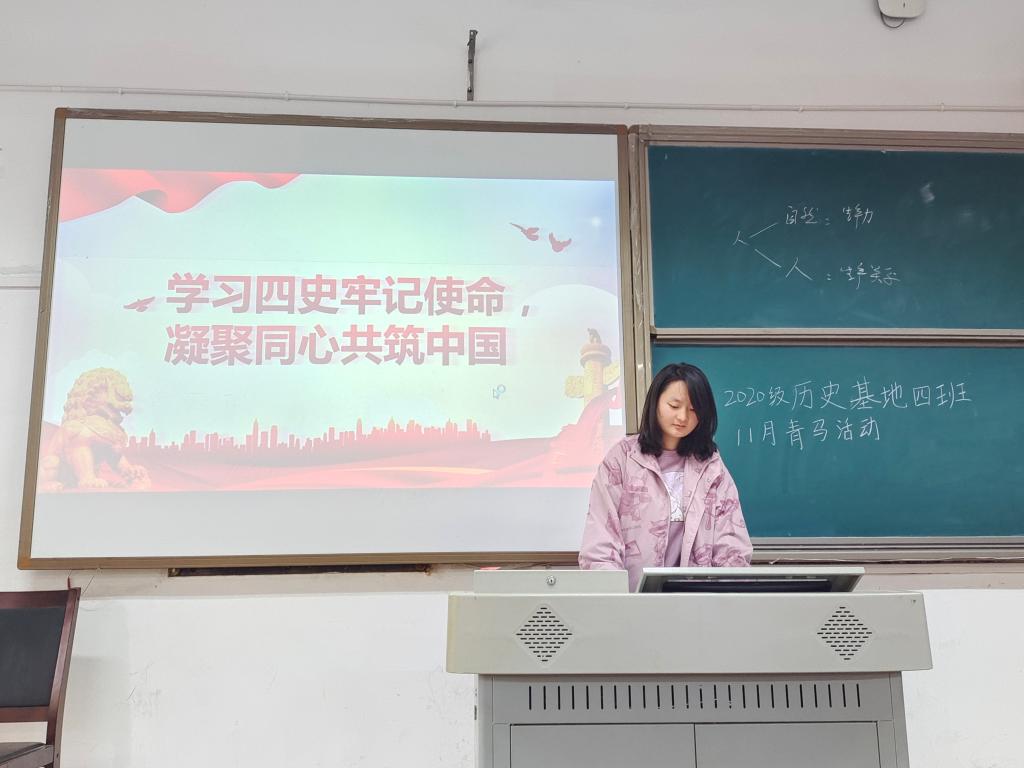 (通讯员 王可儿)为坚定理想信念,践行初心使命,11月16日中午,英国365集团2020级历史基地四班青马中心小组在历文院307教室开展了主题为“学习四史牢记使命,凝聚同心共筑中国”的学习交流会。本次活动由2020级历史基地四班青马中心小组组长王可儿主持,青马中心小组全体人员参加。